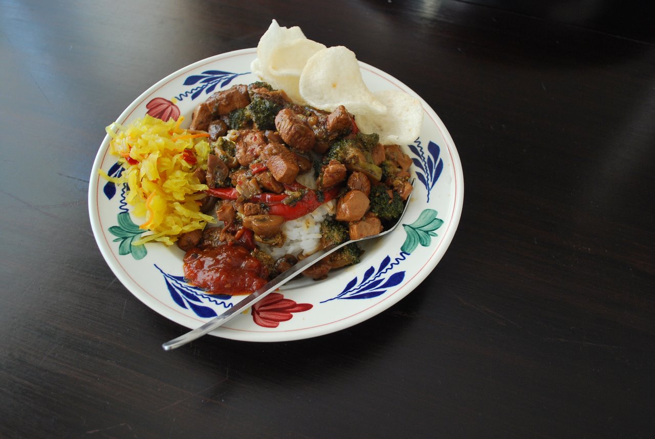 Kip met broccoli, rode paprika en champignons (2 pers)